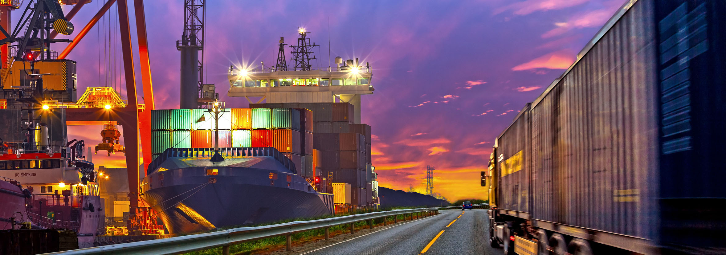 Truck transport container on the road to the port.